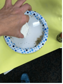 2. Then I introduce the “soap.” Put the soap in the middle of the pepper. In previous lessons I have introduced the soap as a “bully,” however this time I asked them to just think of the soap as a person.