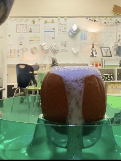 The more baking soda and vinegar you add the bigger the eruption. So get yourself 4 little pumpkins and fill them each with a different level of baking soda. Then pour in the vinegar and talk ask students to observe the different reactions.