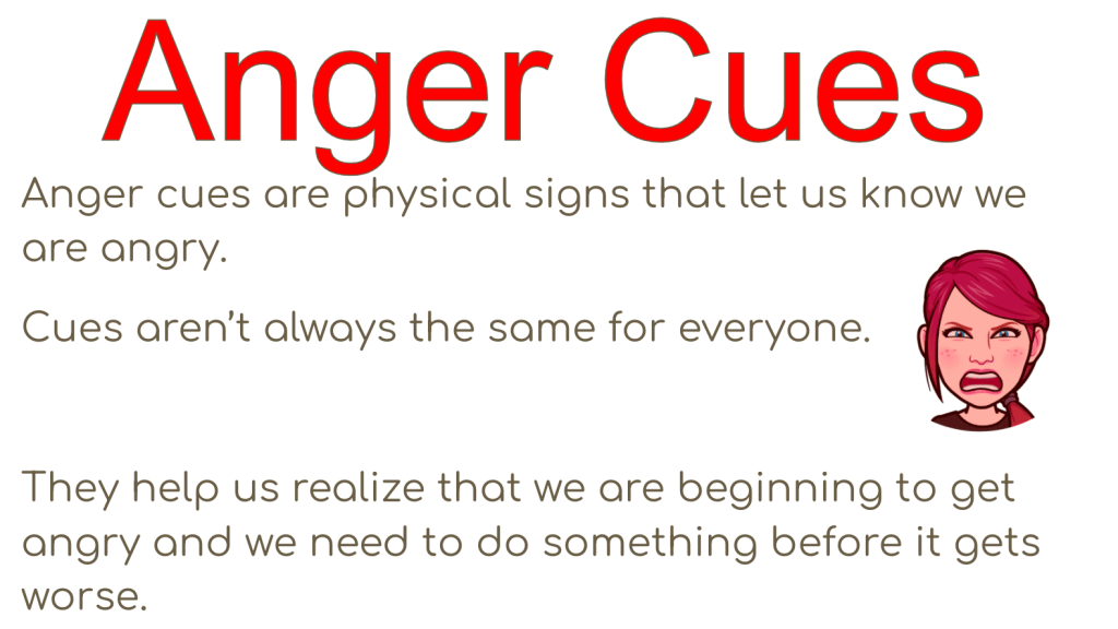 In our last lesson we discuss anger cues and triggers. We talk about how anger is different for everyone and how our bodies respond.
