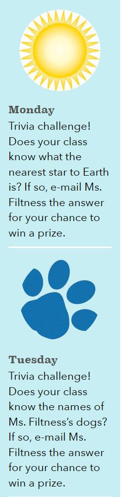 Back in 2014, I started doing trivia and contests to get my teachers and students involved. I ask them questions about me, my position, and sometimes about the theme. For example, when our theme was “Reach For the Stars” in 2018 I asked them questions about stars.