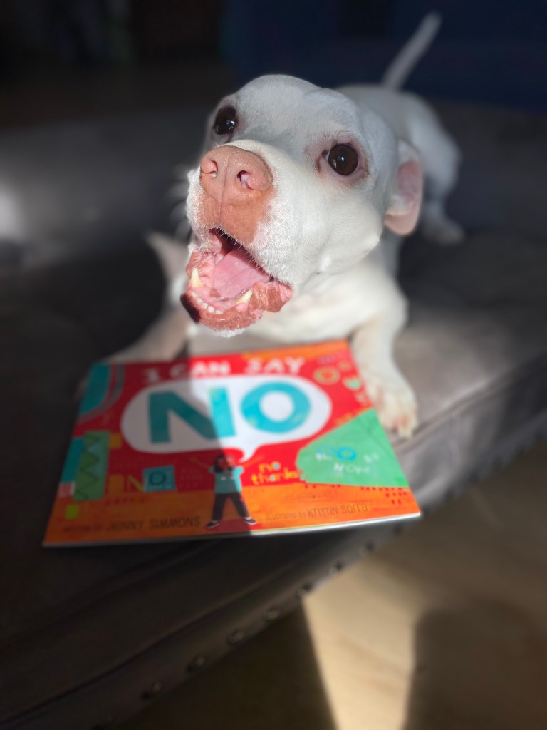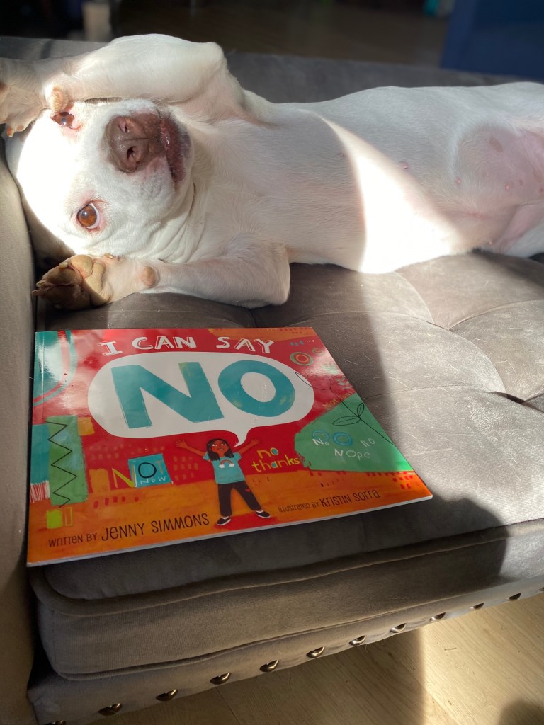 Brooklyn is feeling empowered to say NO and a little bashful after reading this new book by Jenny Simmons! She can’t get over how cute the dog in the book is and mom can’t get over how powerful the story is. We are giving “I Can Say No” two paws up.