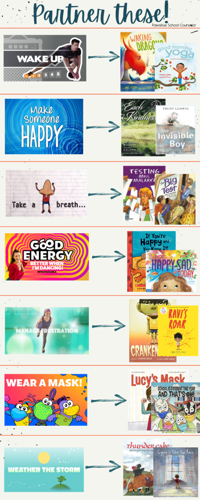 I love partnering the amazing videos from Cosmic Kids Yoga, Head Space, and Go Noodle with books that have a similar theme or main character. It’s a fun way to bring lessons to life and add movement. However I couldn’t always remember what I had partnered with what, so I am starting a list of my favorite pairings. Make sure you save this for later, as I keep adding to it.