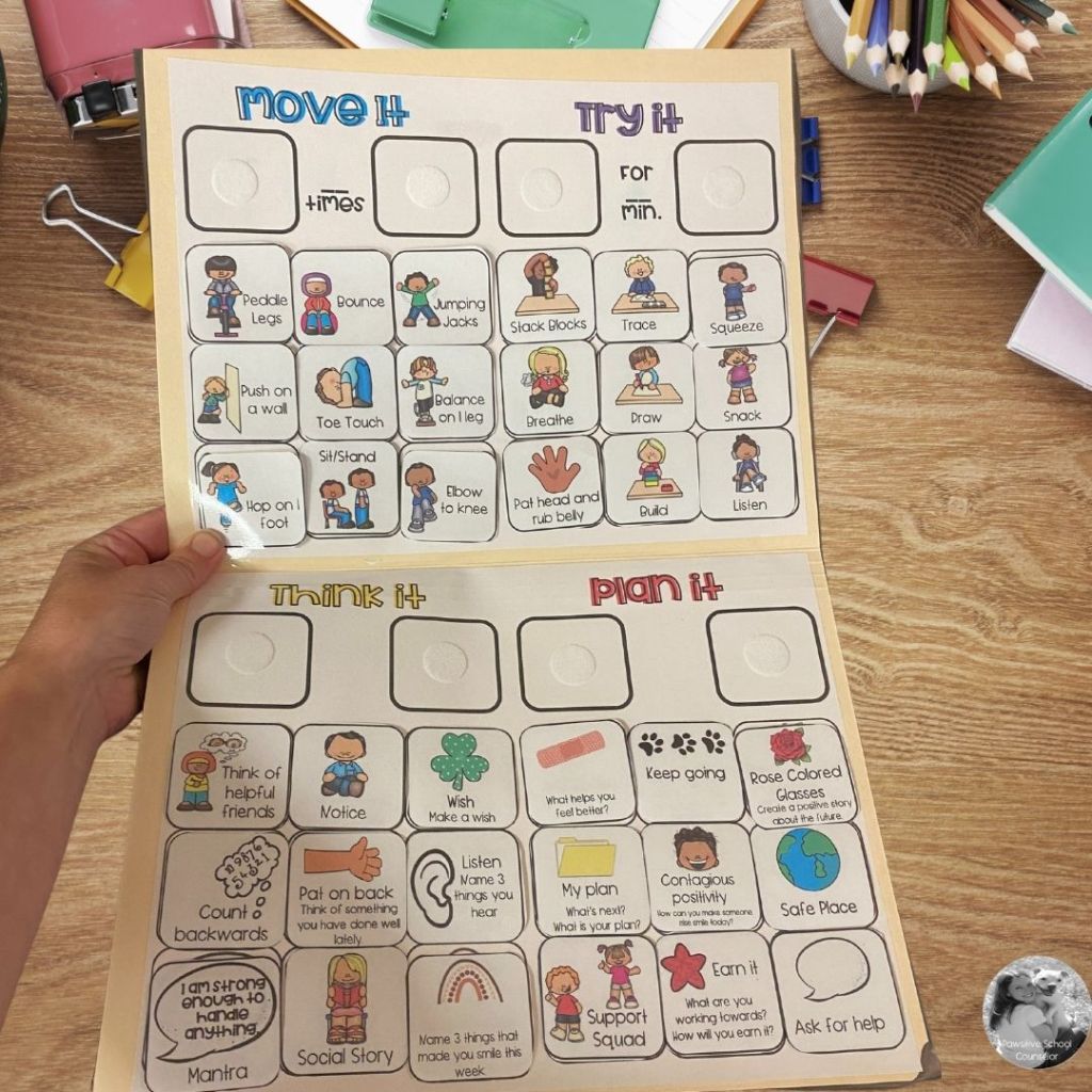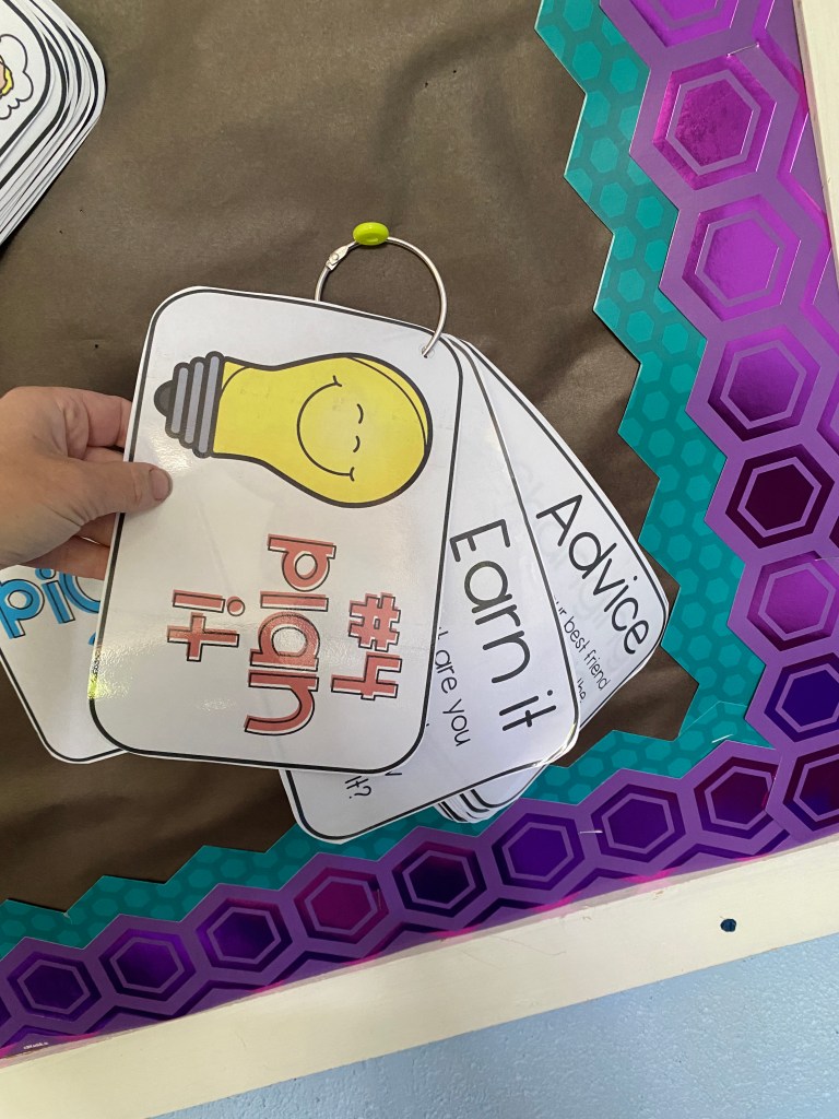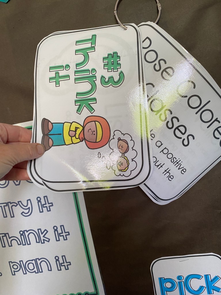 If students are using the break room for scheduled breaks, use the activity cards that help them continue making positive choices and not the cards designed to make amends. You may also choose to read a social story about positivity here.