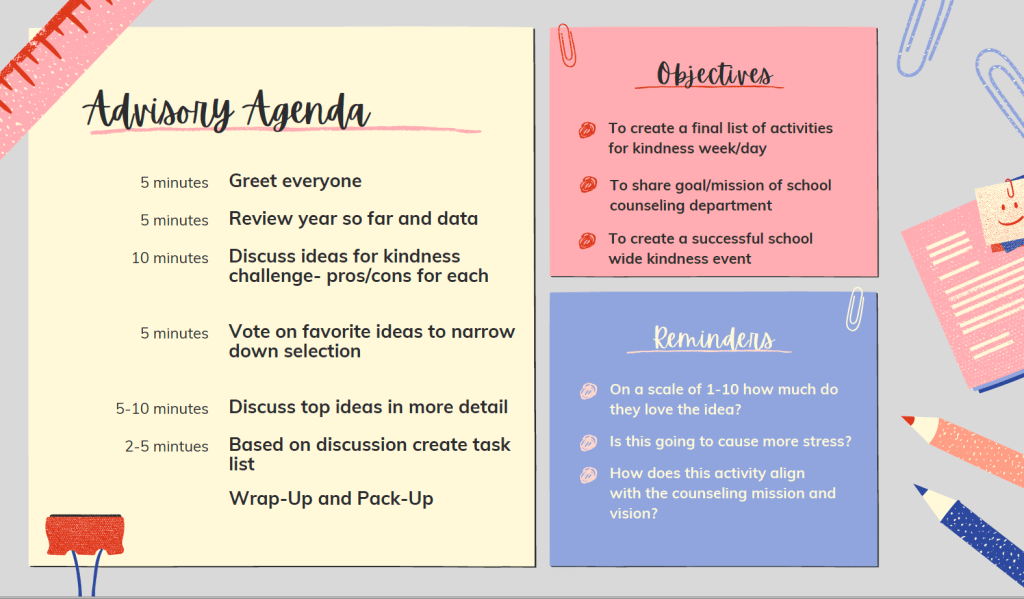 Include your student leaders in helping plan the event. For example, my Jr. Counselors help me create the kindness posters we hang around the school and even help me brainstorm ideas for school-wide events.