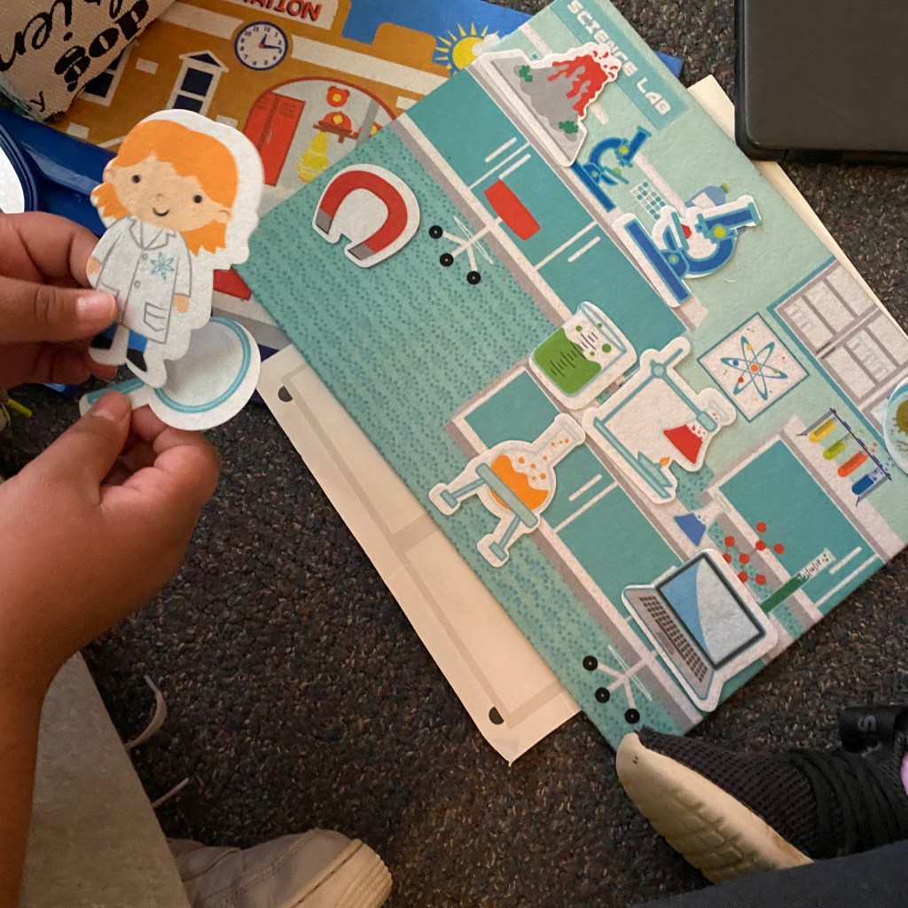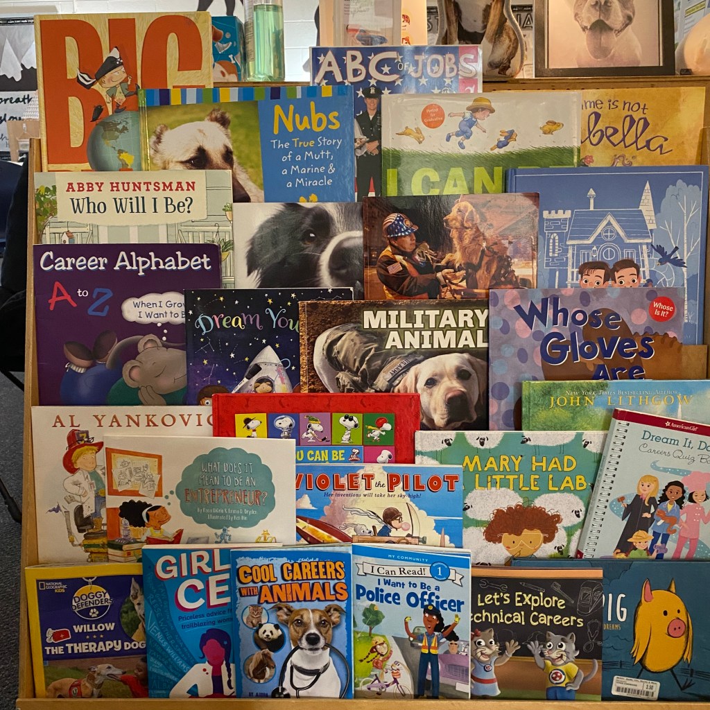 So simple to set up! I put out my favorite career books (my own and/or books from the library) and my “reading buddies.” Students pick a book and they’re off! This center is great for all ages.