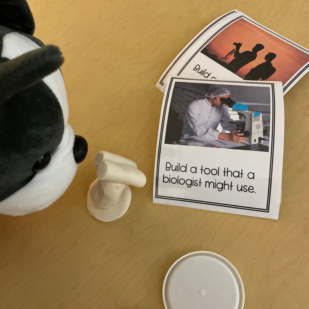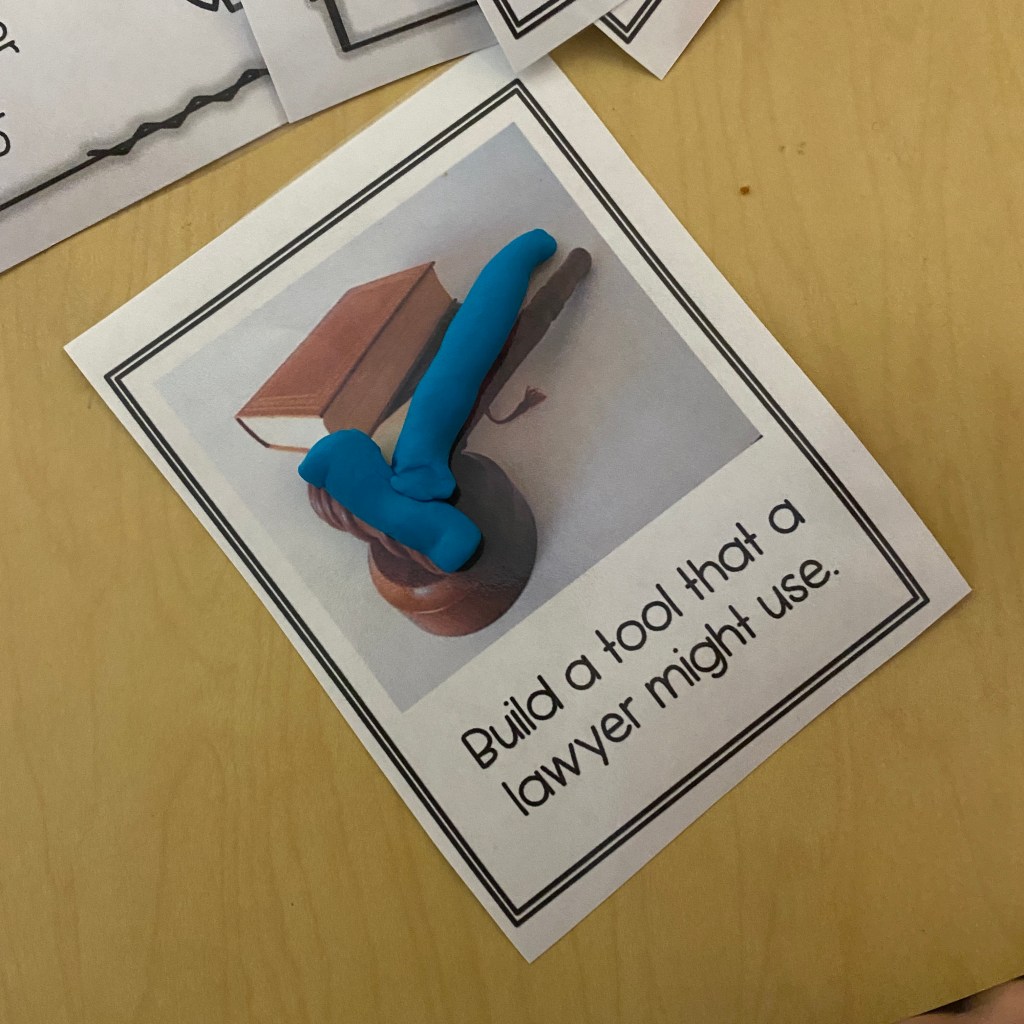 Students choose a career card and then use the playdough or legos to create a tool that person might use. Personally, I wince when colors get mixed so I give each student their own color so they can’t mix all my playdough together.