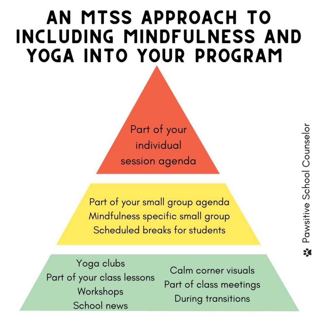 There are multiple ways to incorporate yoga into your program. To begin, I recommend taking it slow and gradually introducing one aspect at a time. Below are some tiered suggestions for integrating yoga into your classroom and MTSS program.