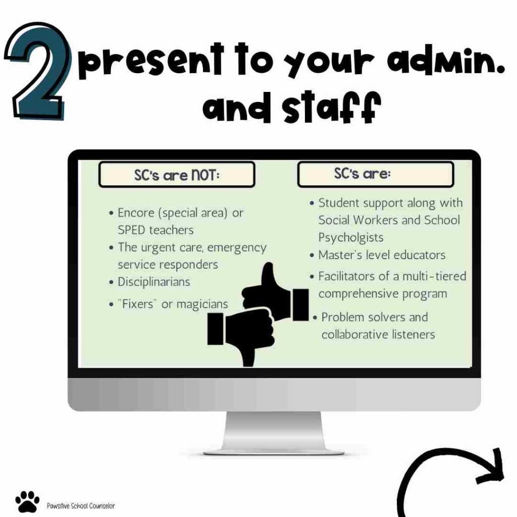 I think explaining to your staff and administration your role is crucial for many reasons. It helps you streamline your services, provide referrals efficiently, and they are often the gatekeeper between you and students/their families. If they don’t understand your role, how will families?
