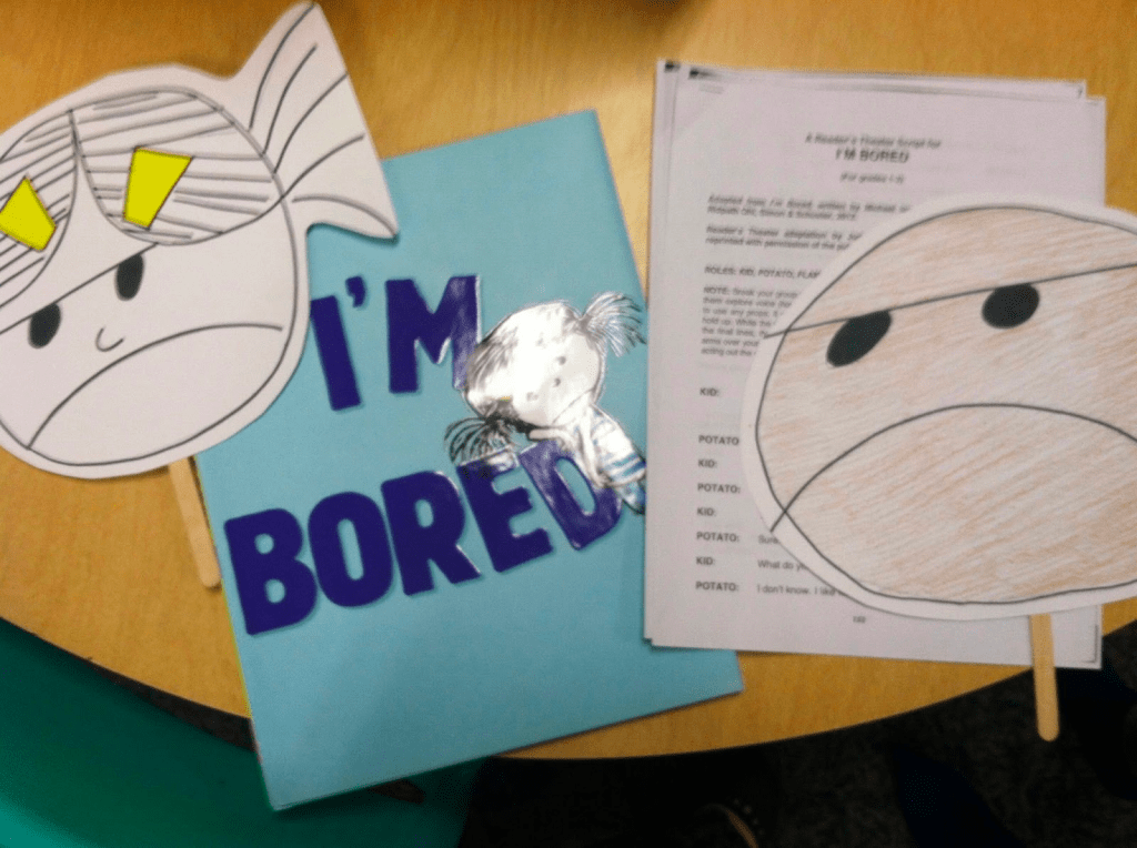 We read the story as a reader’s theater using “I’m Bored” by Michael Ian Black.