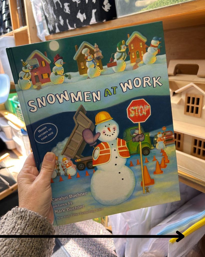 Snowmen don’t just play all night–they have jobs to do, just like the parents of human kids. Dentists replace missing coal from snowman smiles. Pet store owners help pair snowkids with their very own snowpuppy or snowfish to love. The pizza man delivers frozen pizza, and factory workers make the coolest toys in town.